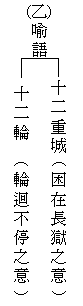 「十二重城,困在長獄之意」,這是比喻。長是講時間太長太長,無量劫。六道就好比是一個監獄,永遠不能夠超越,所以把它比喻作十二重城。又比喻作「十二輪」,輪是「輪迴不停」的意思,永遠不會休止。這是比喻我們為什麼有三世?為什麼有輪迴?為什麼有六道?這是什麼道理形成的?誰在那裡推動?誰在那裡主宰?佛把這些真相跟我們說明了。十二因緣此地是略說,若要詳細的講相當複雜。諸位可參考《十二因緣經》或者《心經詮注》,《心經詮注》裡面引用經論說得很詳細。