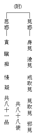 什麼是見思惑?講表末後有附註。「見惑」:見是見解,惑是迷惑;錯誤的見解,錯誤的看法。「思惑」:思是思想,錯誤的思想、錯誤的想法。