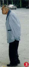 (1)頸椎較曲折(向前塌入),甚至後頸部,可見皮膚折痕(橫紋),(如吸管之折痕)。(如圖1)