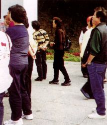 •人往外看(向外攀緣)時,下巴必不自覺地抬起,而看不見自己。(失去自覺觀照)(如圖)