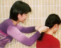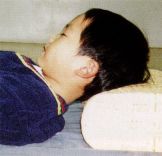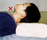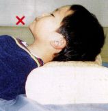 平日仰頭太過者—簡易調整頸椎法: 「不收下巴」的孩子(仰頭看電視)(仰臥),頸椎太向前塌,容易感冒、咳嗽、腦力降低,且易患眼、耳、鼻、口,(如扁桃腺),咽喉之疾病。 |