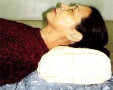 矯正法:(矯正太前塌的頸椎) 可在輕鬆愉快中,將枕頭(勿太軟)(外軟、內硬)放在頸部(枕骨)(較靠「頭頂」)(收下巴),讓「頸椎」完全放鬆,依自然重力(地心引力)頸椎可拉開,復位,恢復正常。 |
