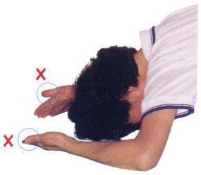 故初學者,若掌不能翻平,只要每拜翻掌時,「剎那」使力翻一下,就即刻放鬆、深吸氣,勿持續緊張用力。每拜若能「剎那」拉開一下、又放鬆,不久就可恢復原來肌肉的彈性和長度,很容易將掌翻平。翻掌雖是個小動作,卻和整個上臂之肌肉、血流神經有關,乃至牽涉到脊髓和腦部(錐體徑路)之傳導,故不宜草率。