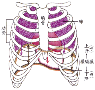 「橫膈膜」是胸部和腹部的分界膜,它會下降也會上升。