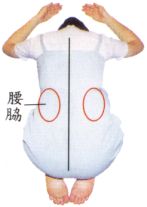 在跪伏姿勢時,充分吸氣,由背後可以見到腰椎之兩側「腰脅部」也充氣鼓脹起來,此即「橫膈」充分下降—「肺」可充分往背後、下方膨脹吸氣之狀態,甚至連「小腹」、「尾骨周圍」皆受推動而膨脹。(平日亦宜如此徹底呼吸,非僅拜佛時。)